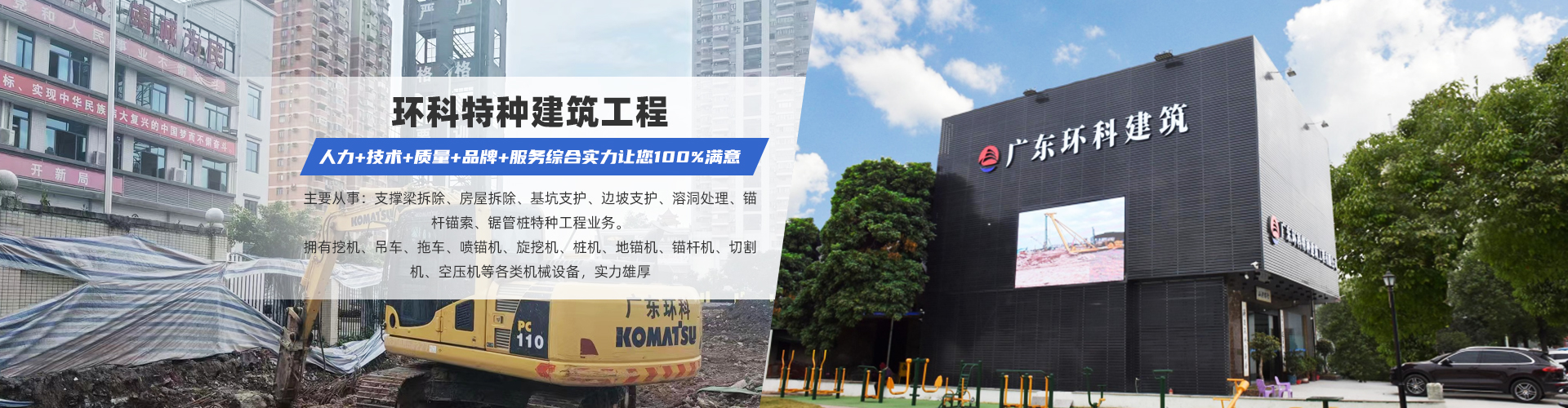 廣東環科特種建筑工程有限公司是一家承接基坑工程及勞務的中大型施工服務企業,公司現有管理人員及施工人員超過400人,長年服務于大型基礎建設企業及國有建設單位。公司至目前經過十多年一步一個腳印,實實在在的做好每一個細節,把每一個工程都當做精品去完成,實現了穩步發展,積累了豐富的施工和管理經驗,在業界有著較高的有名度。公司主要從事:支撐梁拆除、房屋拆除、基坑支護、邊坡支護、溶洞處理、噴錨、錨桿錨索、鋸管樁等特種工程業務,擁有各類機設備(其中包含挖機、吊車、旋挖機、樁機、噴錨機、地錨機、錨桿機、拖車、工程運輸車、空壓機、繩鋸機、切割機、鋸機、風鎬及等機械設備),人才,服務于各大型企業。業務遍布廣東省,并逐步向周邊省市推進,施工足跡踏遍廣東省主要的各大城市和廣西、福建等地區。公司秉持“誠實守信和保證質量”的企業理念,本著“厚德務實、海納百川”的企業精神,以過硬的技術打造優良的精品工程,為您提供高標...